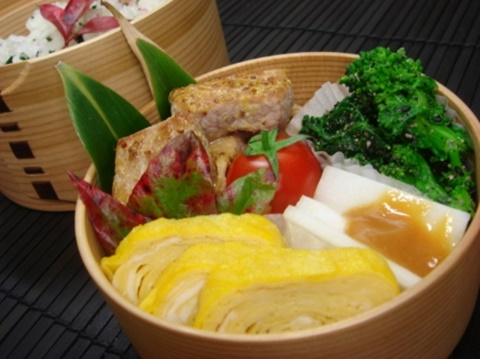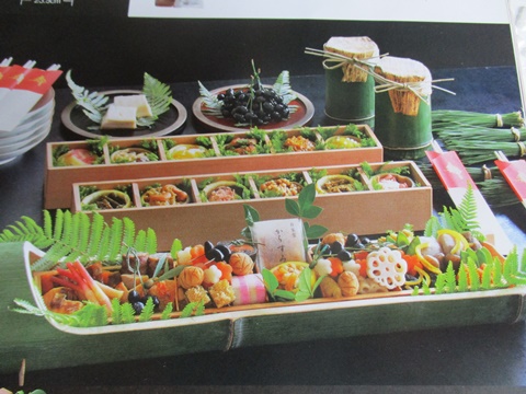 お弁当の彩り 笹の葉と南天
